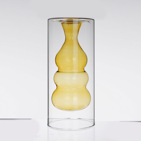 Suministro hecho a mano Color amarillo doble capa de vidrio Aroma Reed botella difusora para una sola flor decoración de la boda