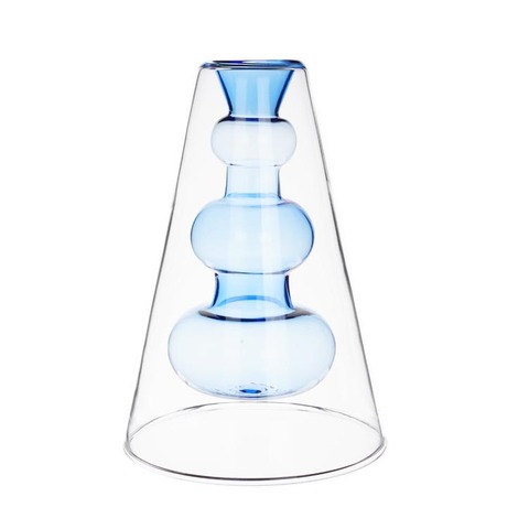 Botella difusora de vidrio azul de doble pared hecha a mano, jarrón de vidrio transparente, florero, botellas de caña aromáticas para decoración del hogar