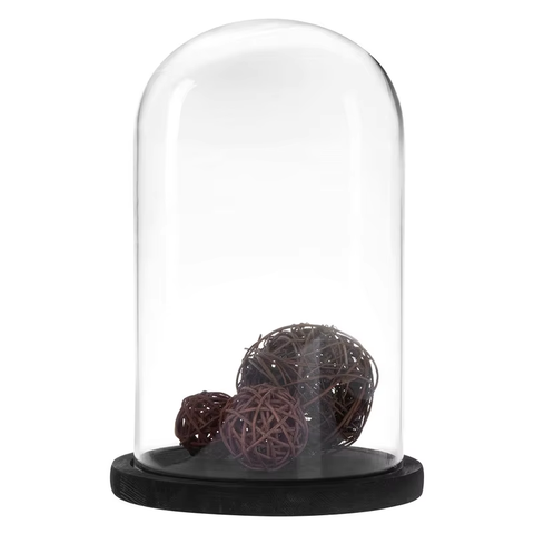 Dôme en verre avec base en bois noir Couvercle en verre pour affichage de table Fabrication artisanale