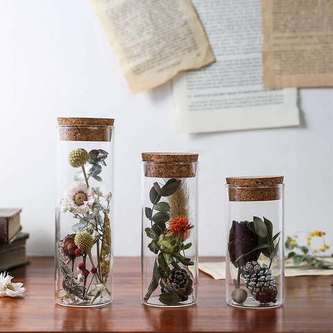 Pot de stockage d'épices alimentaires en verre borosilicate transparent avec couvercle en liège en bois hermétique