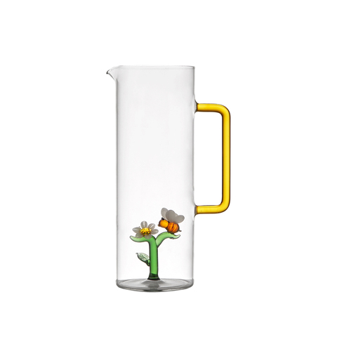 גבוהה borosilicate מים קרים זכוכית עם ידית צמח 3D דפוס צהבת בתוך קומקום מים למכירה