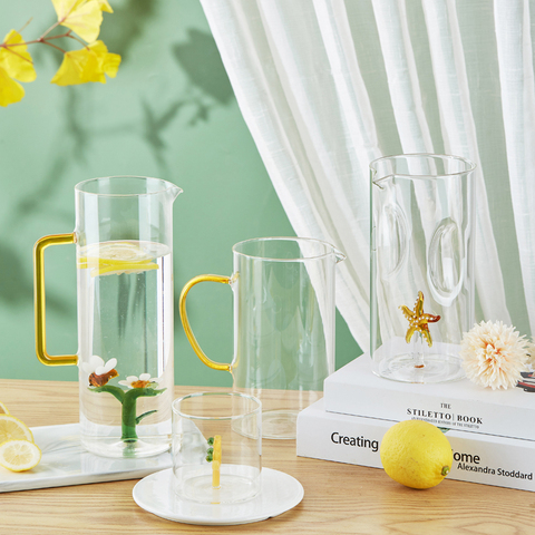 מותאם אישית פרח 3d עיצוב חיות בתוך זכוכית מים קנקן תה קנקן גבוהה בורוסיליקט איכותי למכירה
